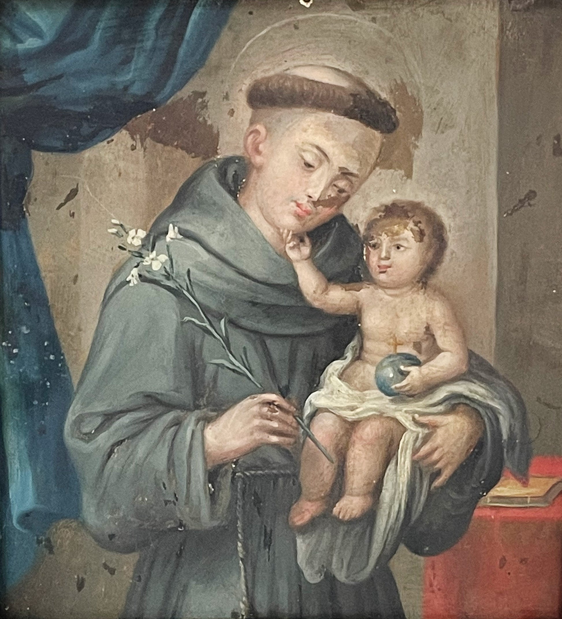 La pintura representa a San Antonio de Padua con el Niño Jesús.